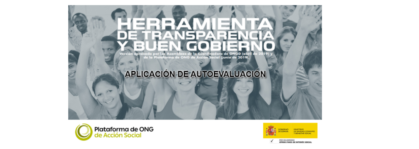 La aplicación de autoevaluación en la Herramienta de Transparencia y Buen Gobierno es una actuación que desarrolla desde el año 2020 la Plataforma de ONG de Acción Social a partir de un proyecto financiado a cargo de la convocatoria de subvenciones para la realización de actividades de interés general con cargo a la asignación tributaria del Impuesto sobre la Renta de las Personas Físicas centrado en el cumplimiento normativo, los modelos de Integridad y la Transparencia y Buen Gobierno.