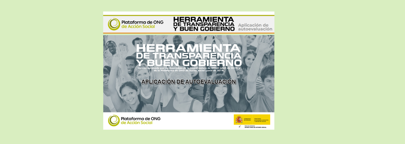 La Plataforma de ONG de Acción Social, junto con la Coordinadora de ONGD España, han adaptado y diseñado la Herramienta de transparencia y buen gobierno. Esta herramienta, acompañada de una metodología de uso, dispone de una serie de indicadores objetivamente verificables que permiten verificar el grado de transparencia y buen gobierno de las ONG de Acción Social. Además, la herramienta pretende servir de guía para la mejora continua y conseguir evaluaciones de debilidades y fortalezas en ese ámbito, por lo tanto, para aquellas entidades que ya realizaron la autoevaluación en las anteriores convocatorias, completarla de nuevo, podrá servir para medir los avances conseguidos en la organización, ya que al volver a contestar las preguntas se podrán incluir los progresos y las mejoras de cada proceso y compartir los avances con el resto de entidades.