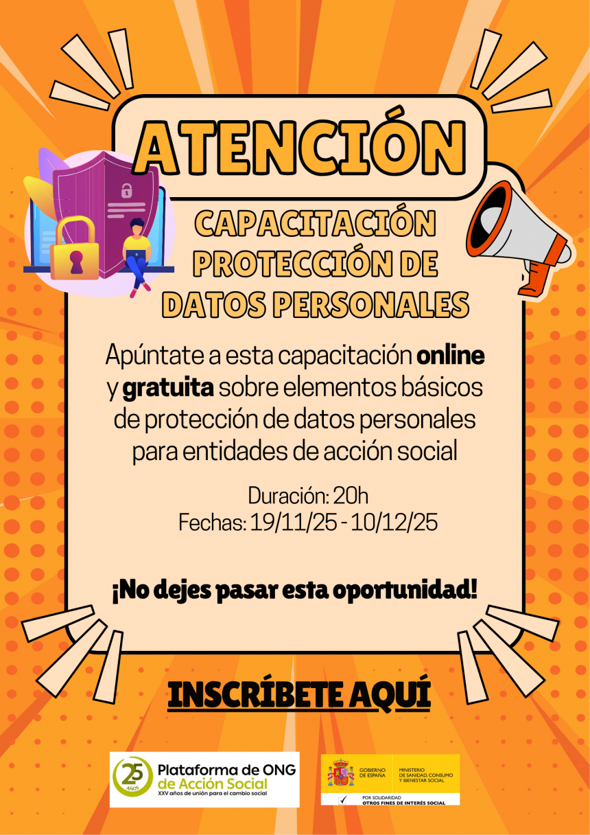 La Plataforma de ONG te invita a participar en su capacitación sobre protección de datos en entidades de acción social