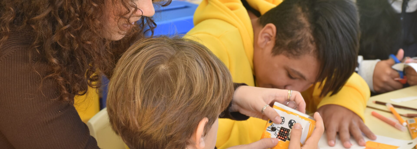 La actividad se desarrolló mediante una propuesta lúdica y tecnológica en la que cada participante diseñó y pintó una mascota virtual inspirada en el derecho que eligiera. Después, incorporamos una tarjeta Micro:bit programada, que permitía interactuar con la mascota (acariciarla, sacudirla, girarla), reforzando así las ideas de cuidado y respeto de los derechos.