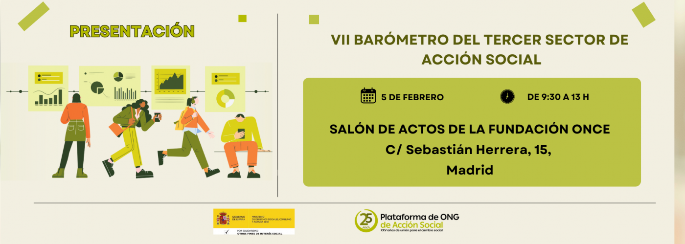 Desde la Plataforma de ONG tenemos el placer de invitarte a la presentación en Madrid del VII Barómetro del Tercer Sector Social.